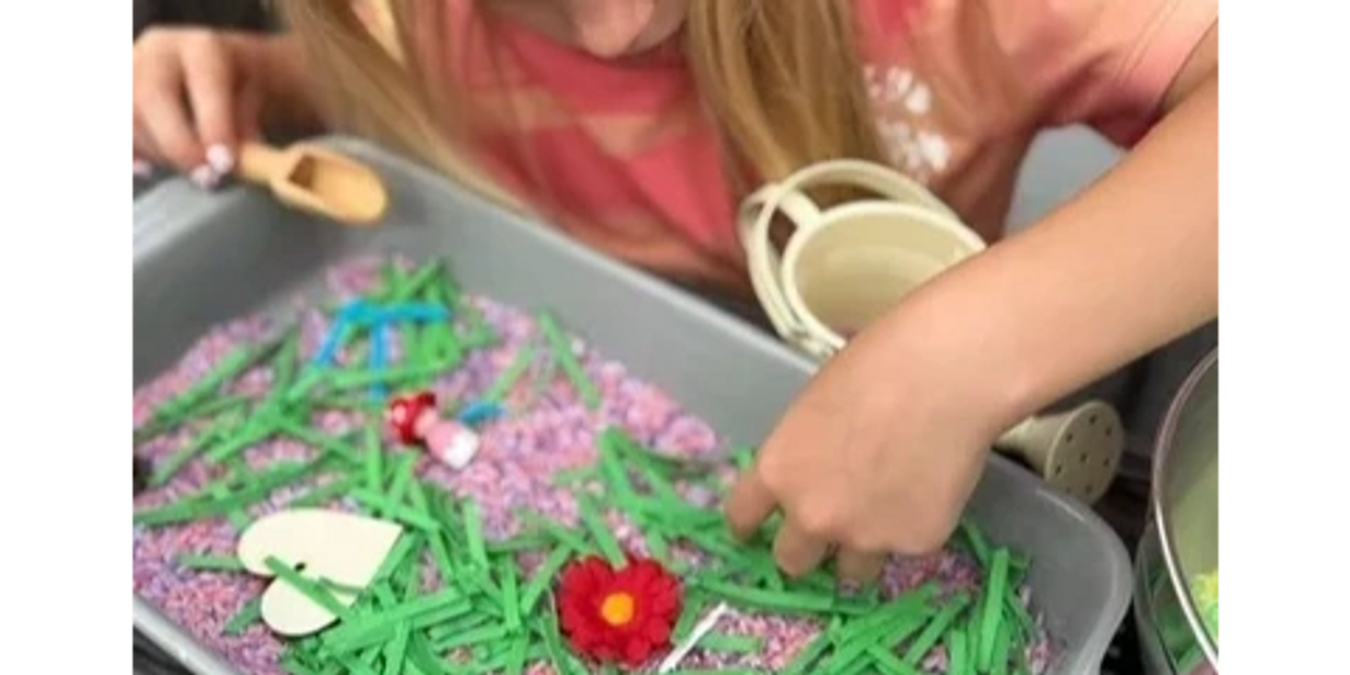 · Promotes mindfulness and calmness – It allows children to reconnect with their senses, find a sense of calm and provide a soothing and therapeutic sensory experience. The repetitive motions of touching, scooping, pouring and sifting rice helps children to focus on the present moment, reducing stress or anxiety, and regulate emotions.